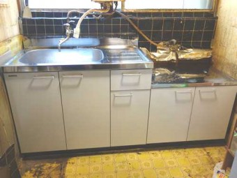 借家にお住いの方の流し台のシンクが壊れ、新しい流し台の交換依頼を頂きました。